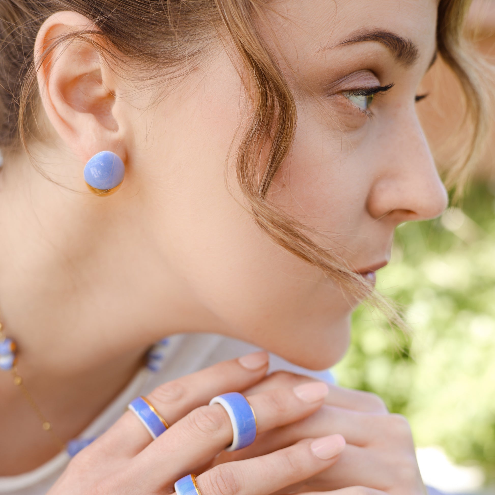 Nježne pastelne nijanse porculana evociraju suptilne tonove ranog svitanja, dok sunce izlazi i obasjava svijet mekim, zlatnim svjetlom. Porculanske elemente pažljivo upotpunjuje pozlate i hipoalergeni nehrdjajući čelik; dodajući im luksuzan sjaj. Toplina sjaja zlata kontrastira sa porcelanom, stvarajući zapanjujuću igru svetla i senki koja hvata suštinu prolećnog jutra.