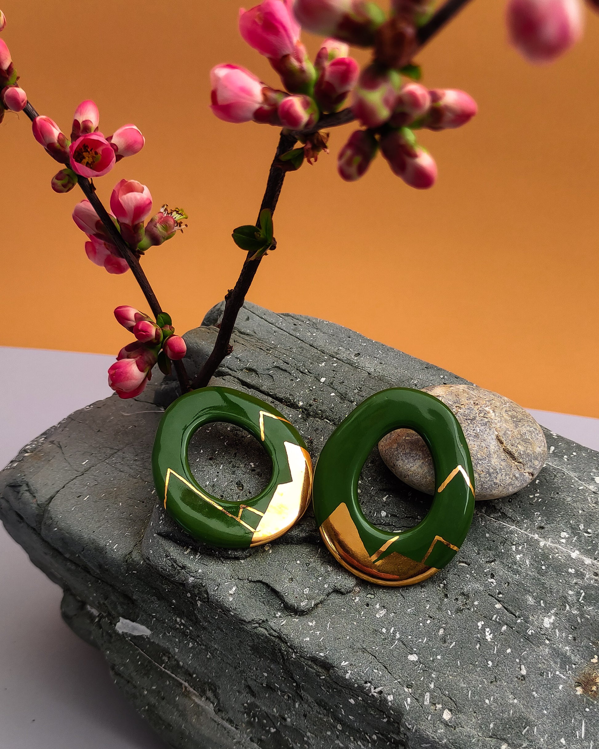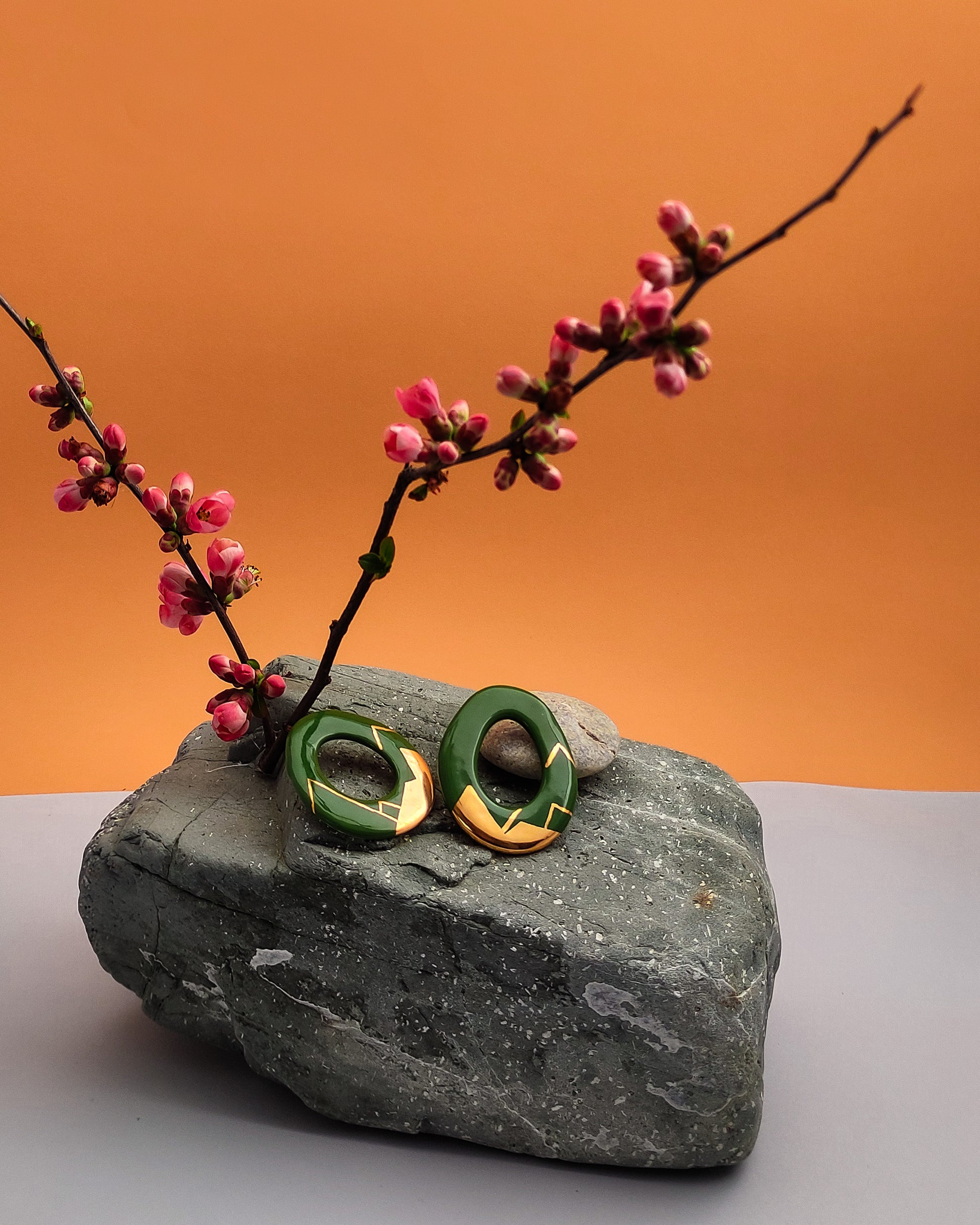 Nježni planinski vrhovi od porculana obavijeni su sjajnom pozlatom, stvarajući privlačan kontrast materijala. Bilo da se nose kao upečatljivi komad ili dnevni dodatak, ova umjetnička djela evociraju sjećanja na prekrasne vidike i avanture. Svaki je komad pažljivo ručno izrađen kako bi utjelovio surovost, ali spokoj ovih zadivljujućih prirodnih čuda.
