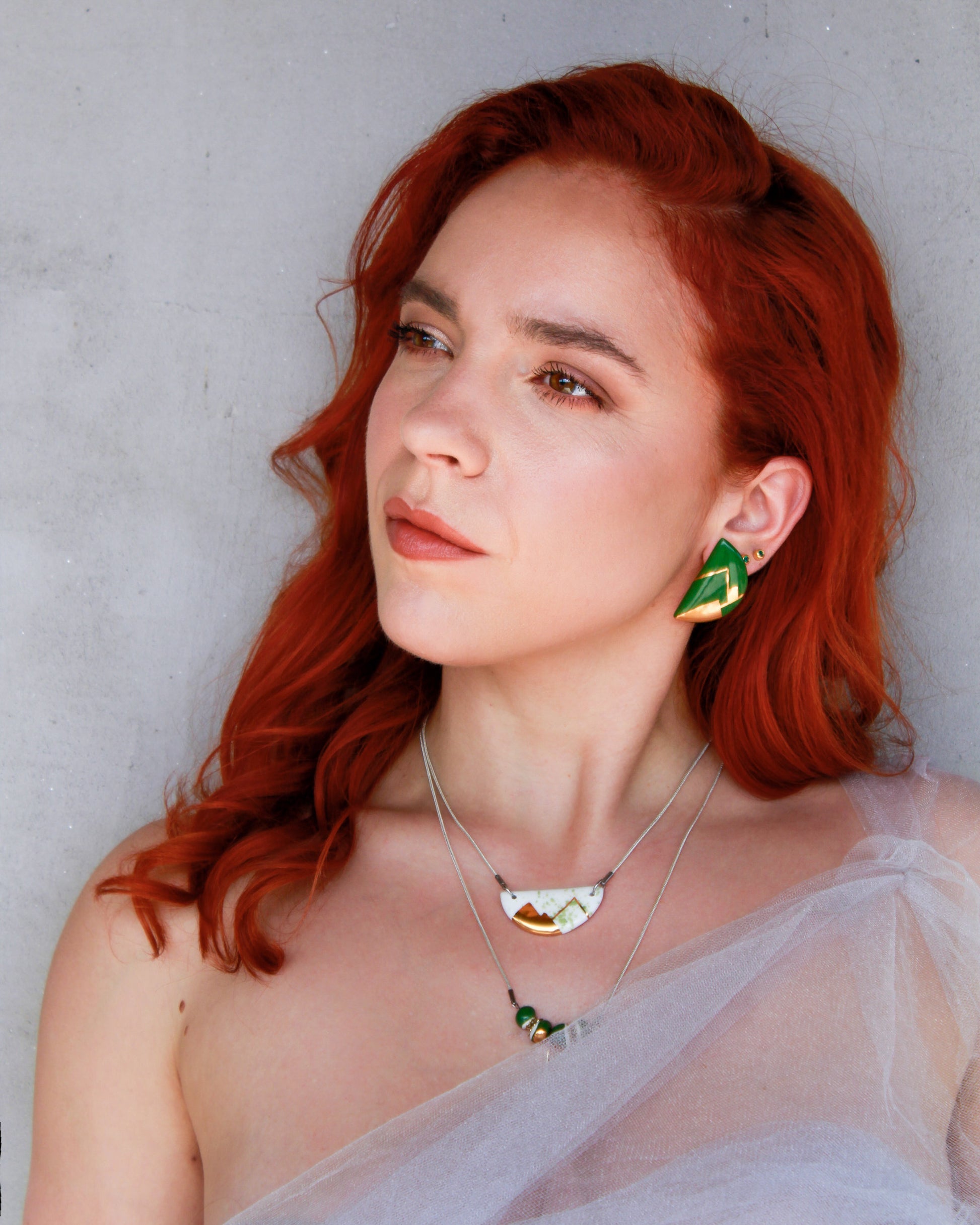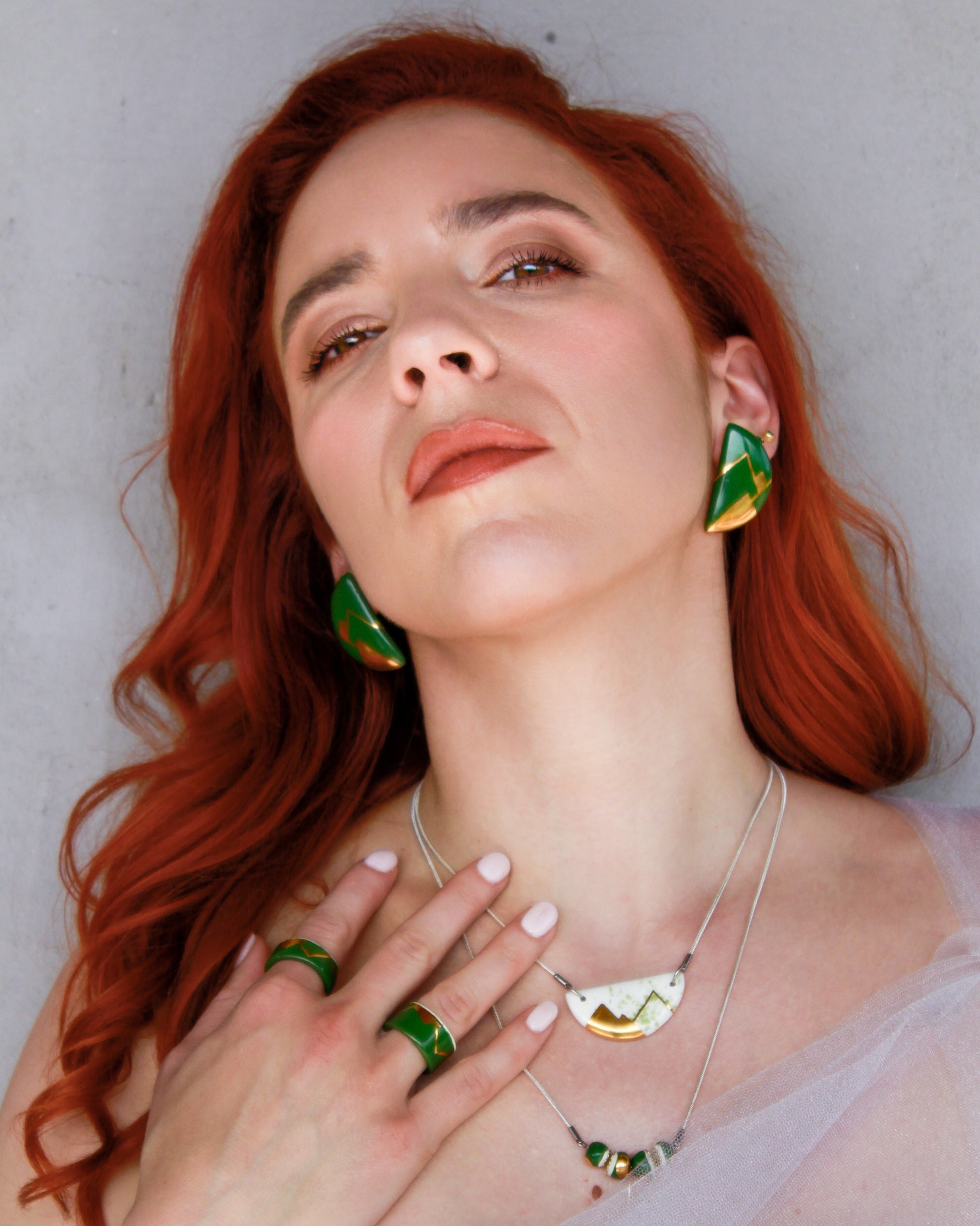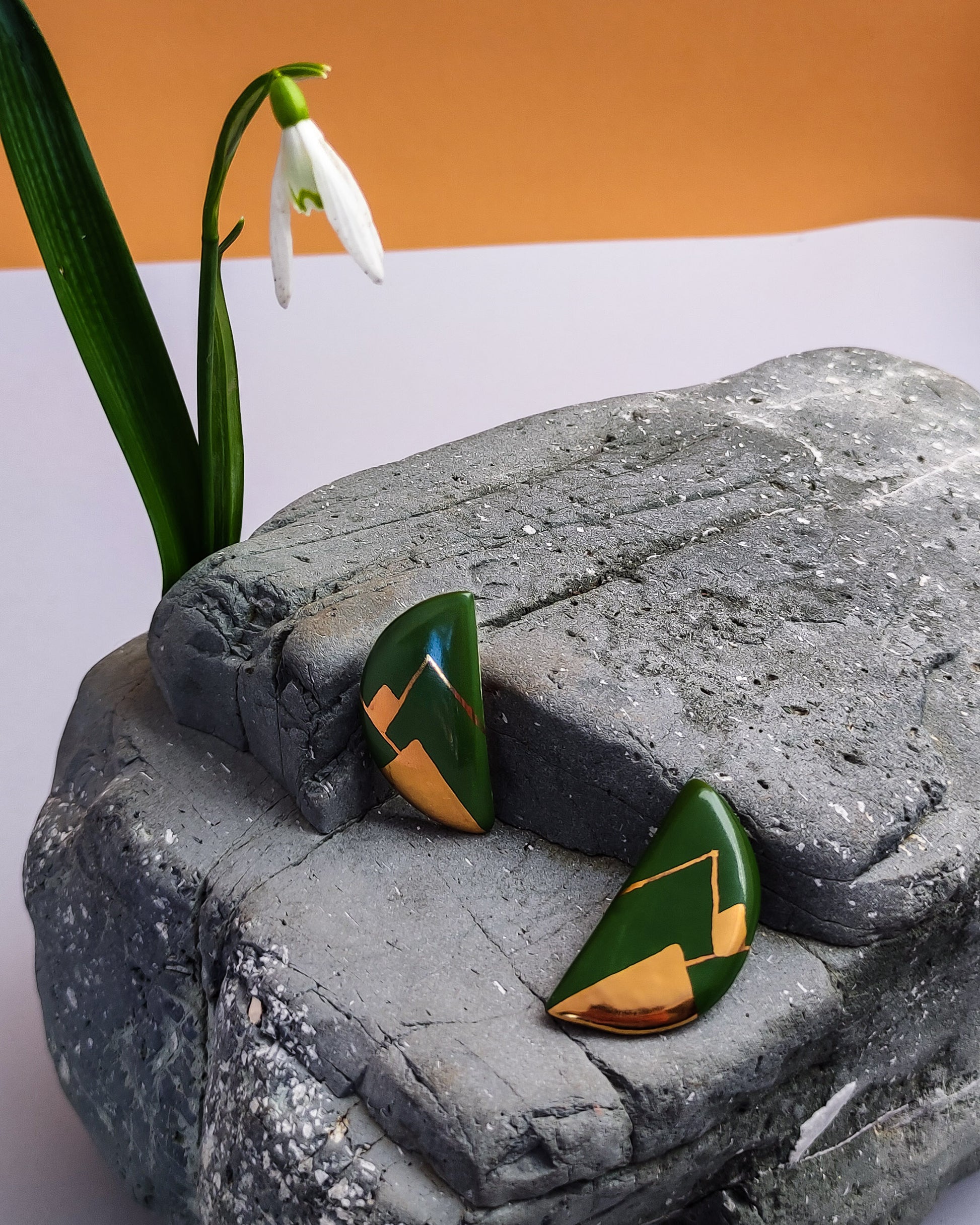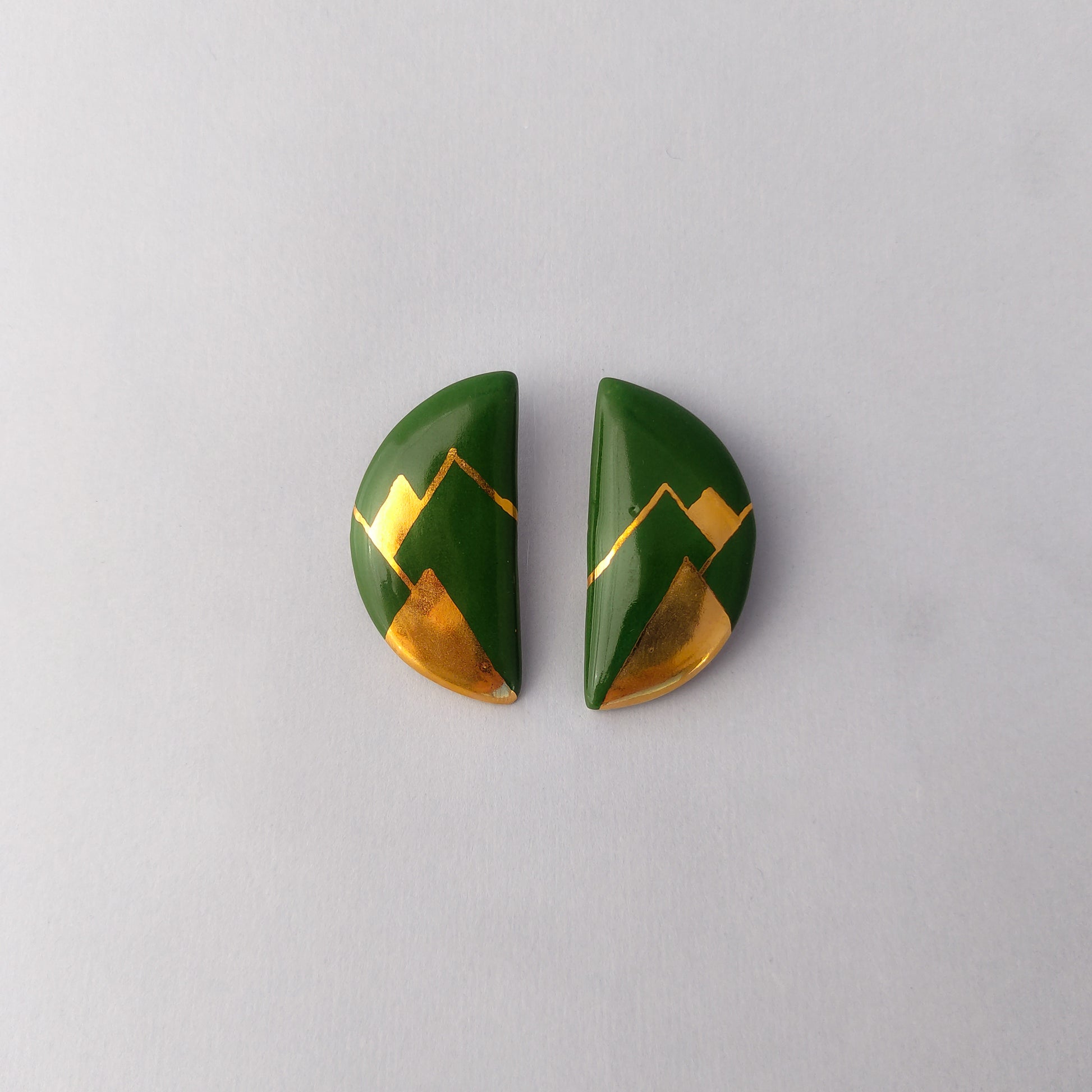 Nježni planinski vrhovi od porculana obavijeni su sjajnom pozlatom, stvarajući privlačan kontrast materijala. Bilo da se nose kao upečatljivi komad ili dnevni dodatak, ova umjetnička djela evociraju sjećanja na prekrasne vidike i avanture. Svaki je komad pažljivo ručno izrađen kako bi utjelovio surovost, ali spokoj ovih zadivljujućih prirodnih čuda.