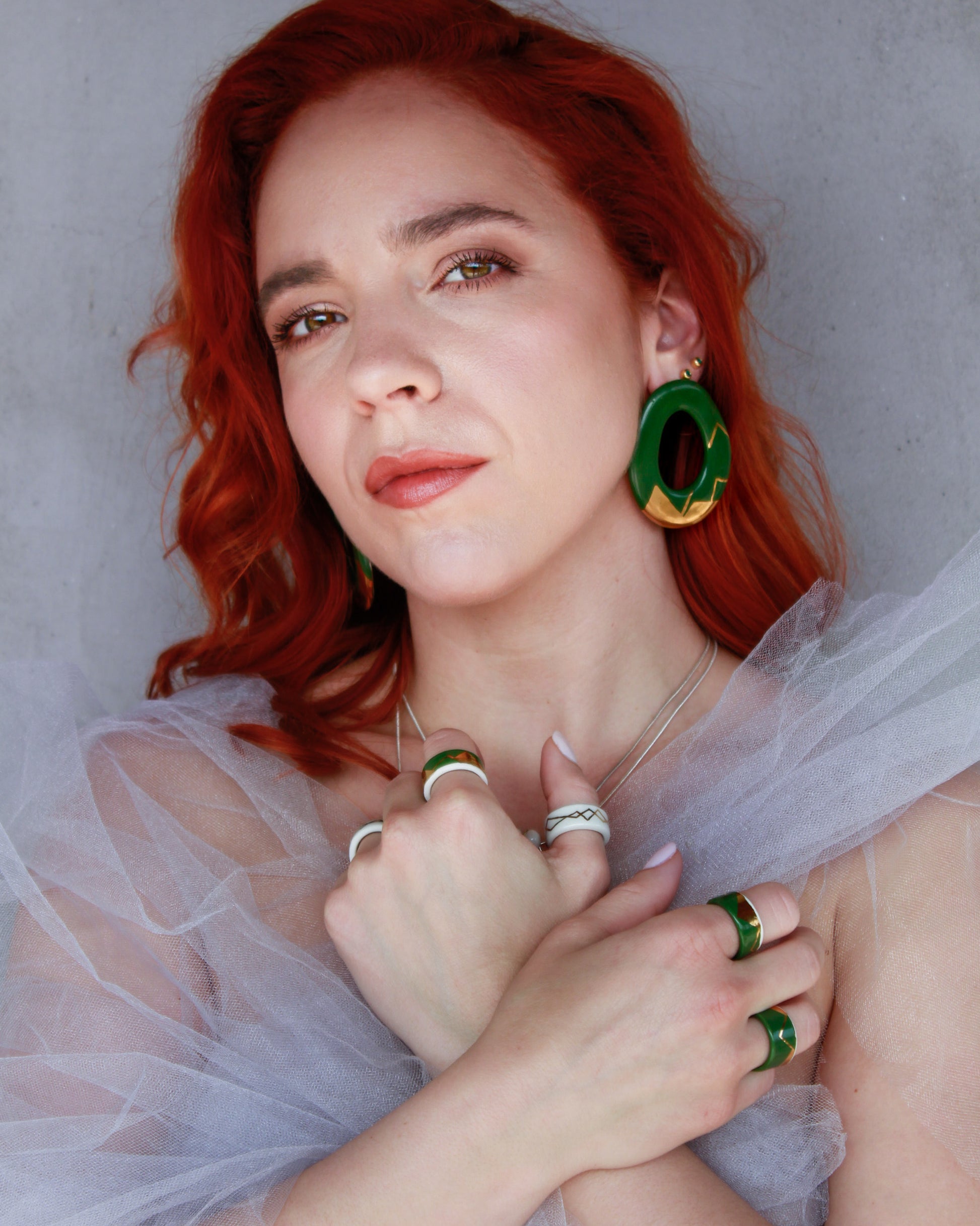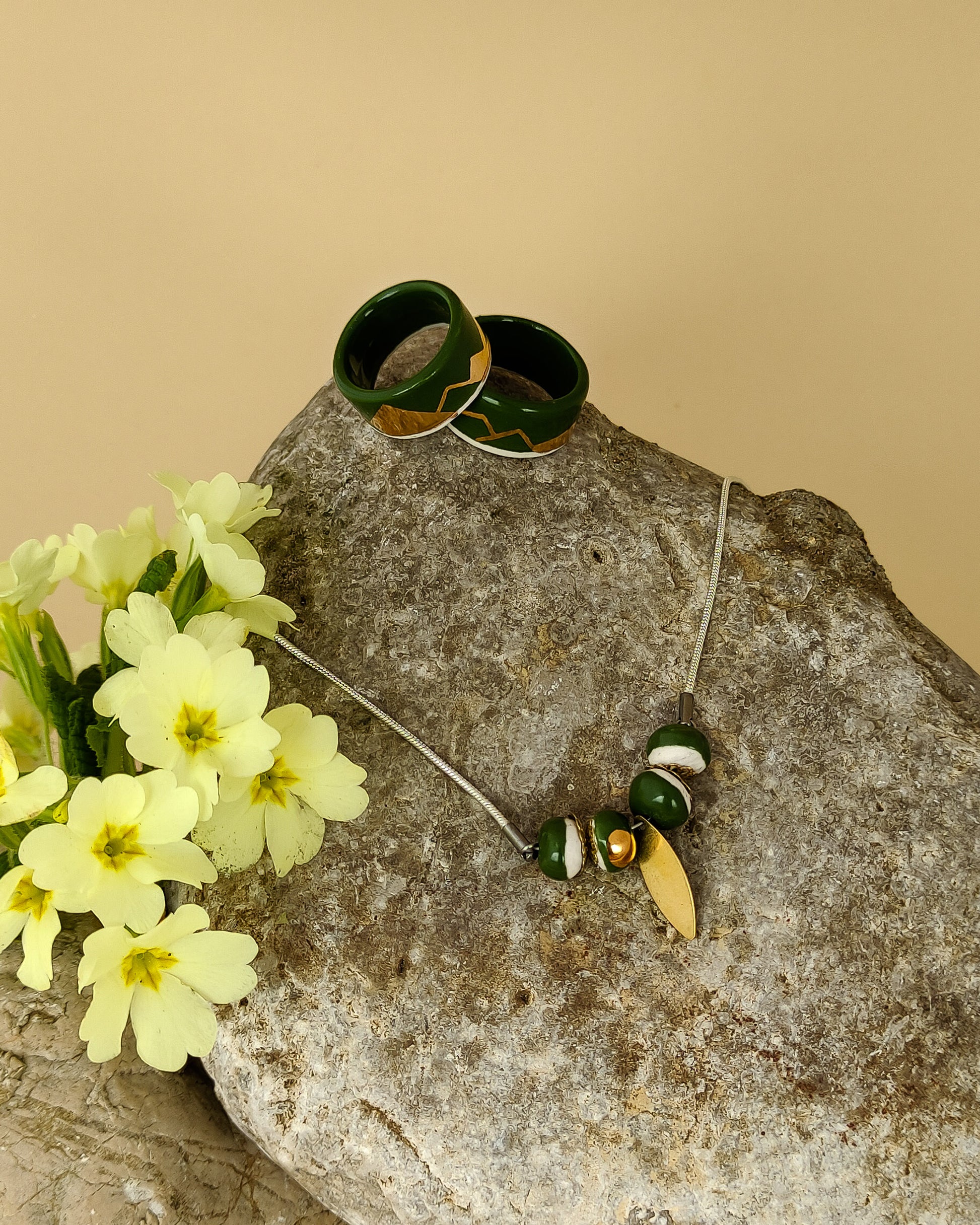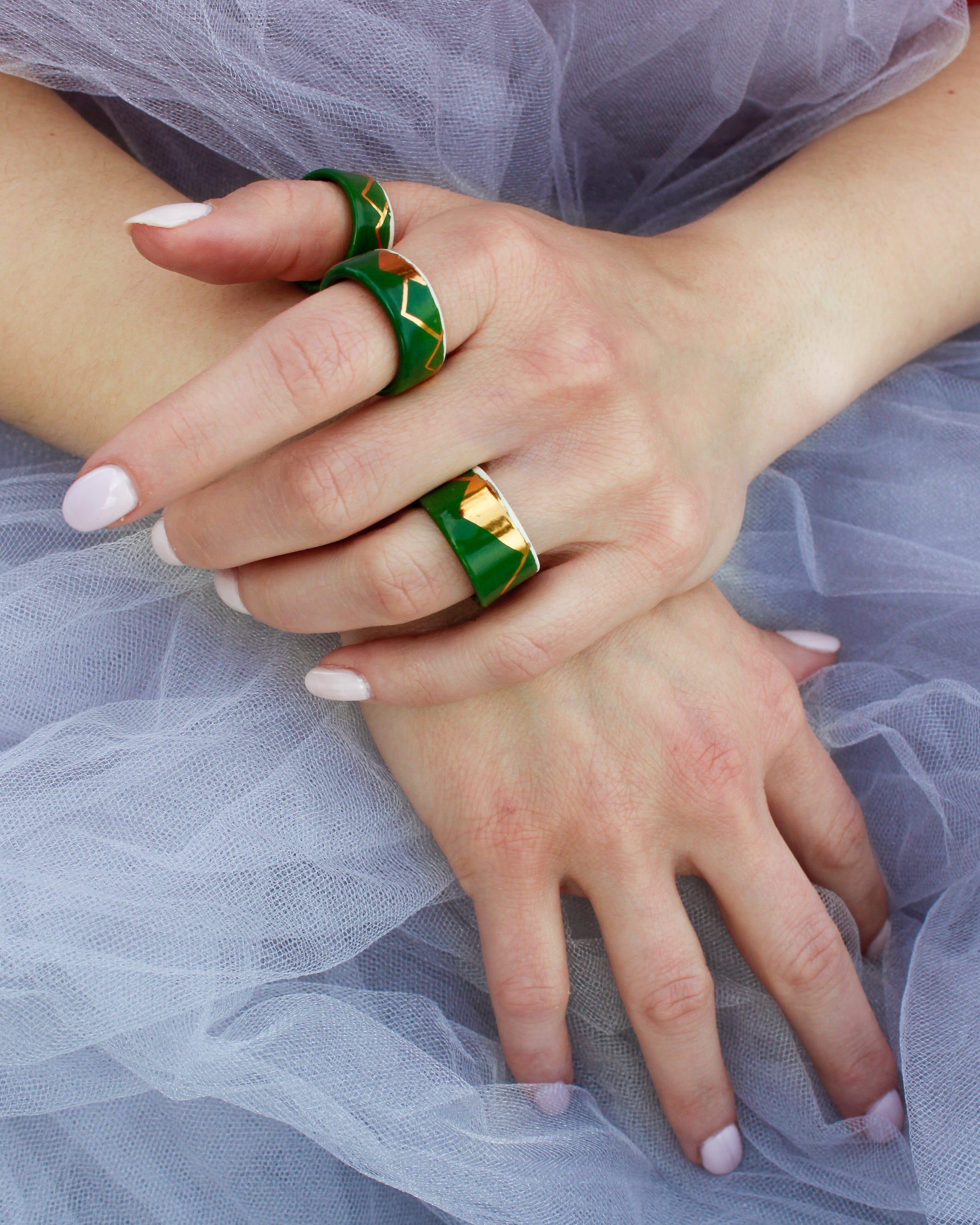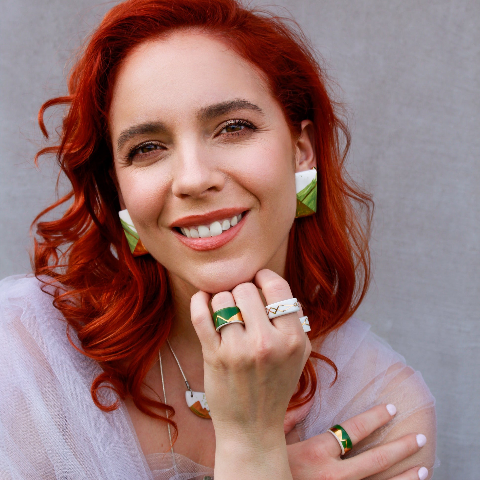 Nježni planinski vrhovi od porculana obavijeni su sjajnom pozlatom, stvarajući privlačan kontrast materijala. Bilo da se nose kao upečatljivi komad ili dnevni dodatak, ova umjetnička djela evociraju sjećanja na prekrasne vidike i avanture. Svaki je komad pažljivo ručno izrađen kako bi utjelovio surovost, ali spokoj ovih zadivljujućih prirodnih čuda.