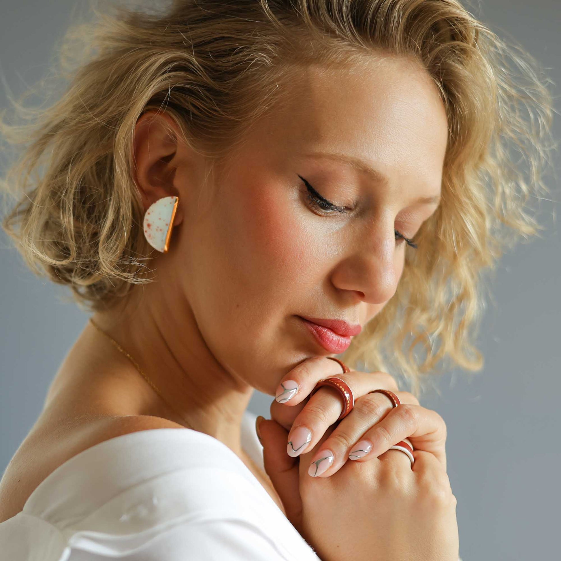 Prigrlite ljepotu jeseni uz kolekciju Jesenji Zagrljaj, luksuznu liniju ručno izrađenog nakita inspisanog jarkim bojama jesenskog lišća. Ova prekrasna kolekcija sadrži elegantne komade u bogatim nijansama tamnocrvene i šumske zelene, koje dočaravaju trenutak promjene lišća u sezoni. Sa 9 tamnocrvenih naušnica, 5 zelenih naušnica, 2 tamnocrvene ogrlice, 1 zelenom ogrlicom i prstenovima u obje boje, svaki komad je omaž ljepoti i transformaciji prirode.
