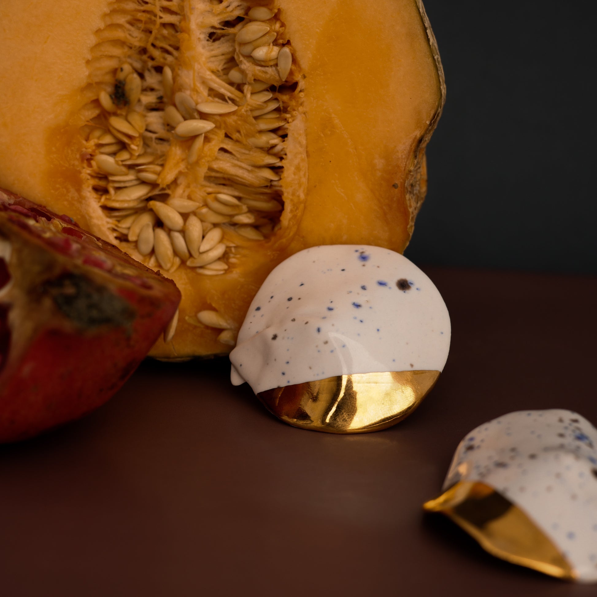 karatna pozlata dodaje dašak raskoši i sofisticiranosti nakitu, podižući ga na novi nivo luksuza. Paleta boja kolekcije odražava bogate nijanse i suptilne tonove pronađene na slikama mrtve prirode. Metalni dijelovi su napravljeni od hipoalergenog čelika.Ova fuzija umjetničkih formi stvara zadivljujući narativ koji slavi prolaznu ljepotu života, odajući počast prolaznosti postojanja.