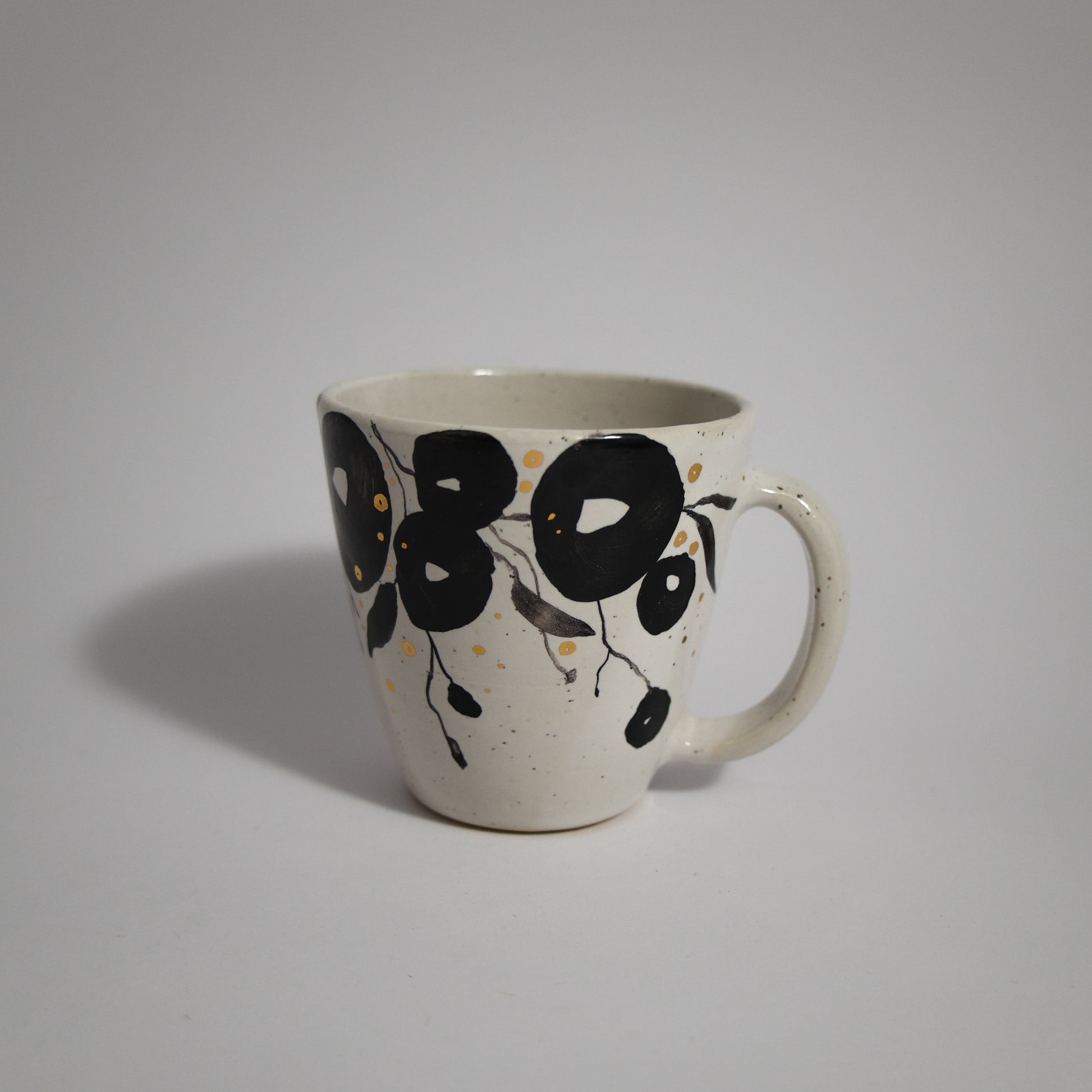 Gilinena šoljica napravljena ručno na grnčarskom točku, ručno oslikana. Sigurna za svakodnevnu upotrebu i pogodna za mašinsko pranje na manjim temperaturama..