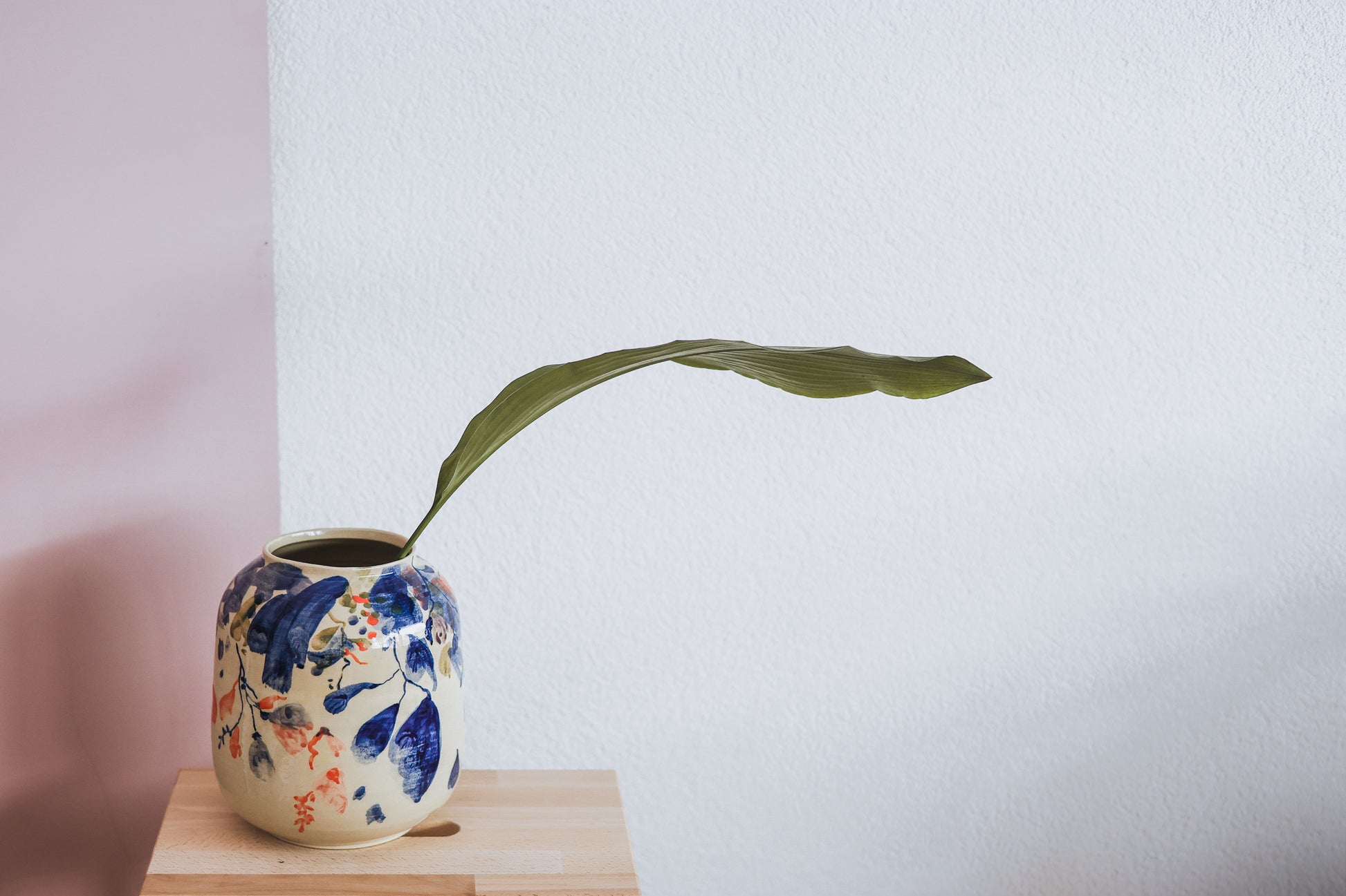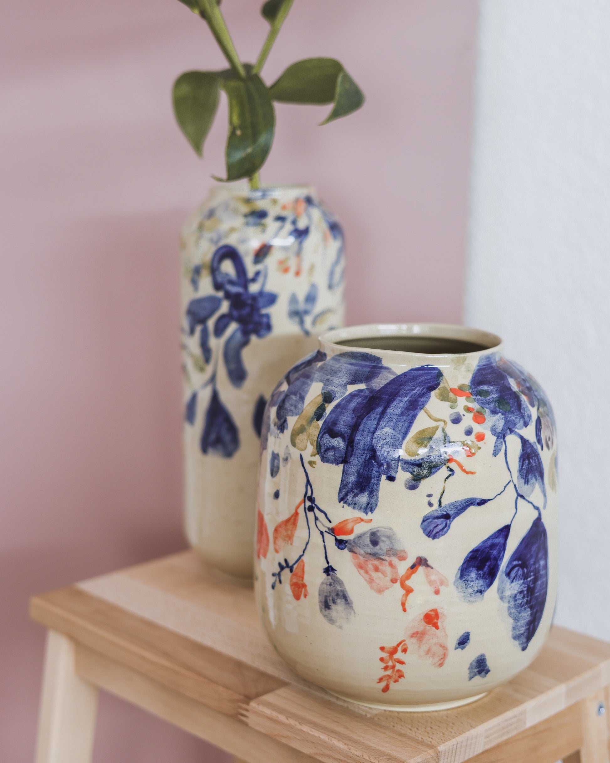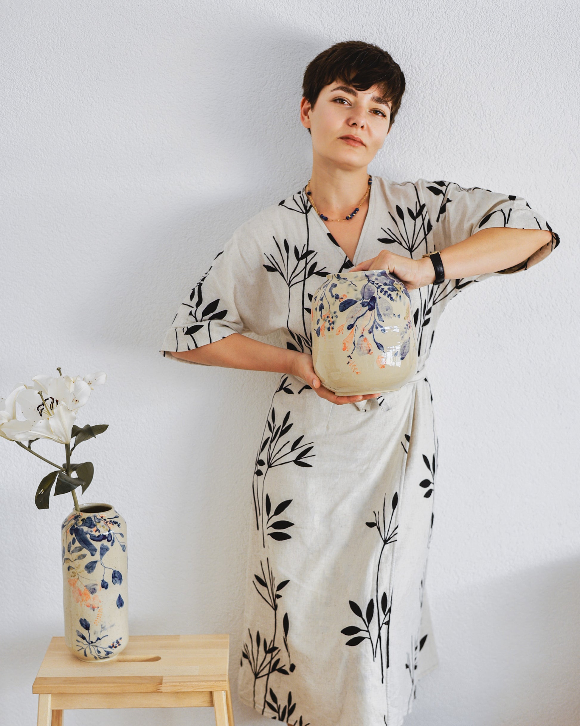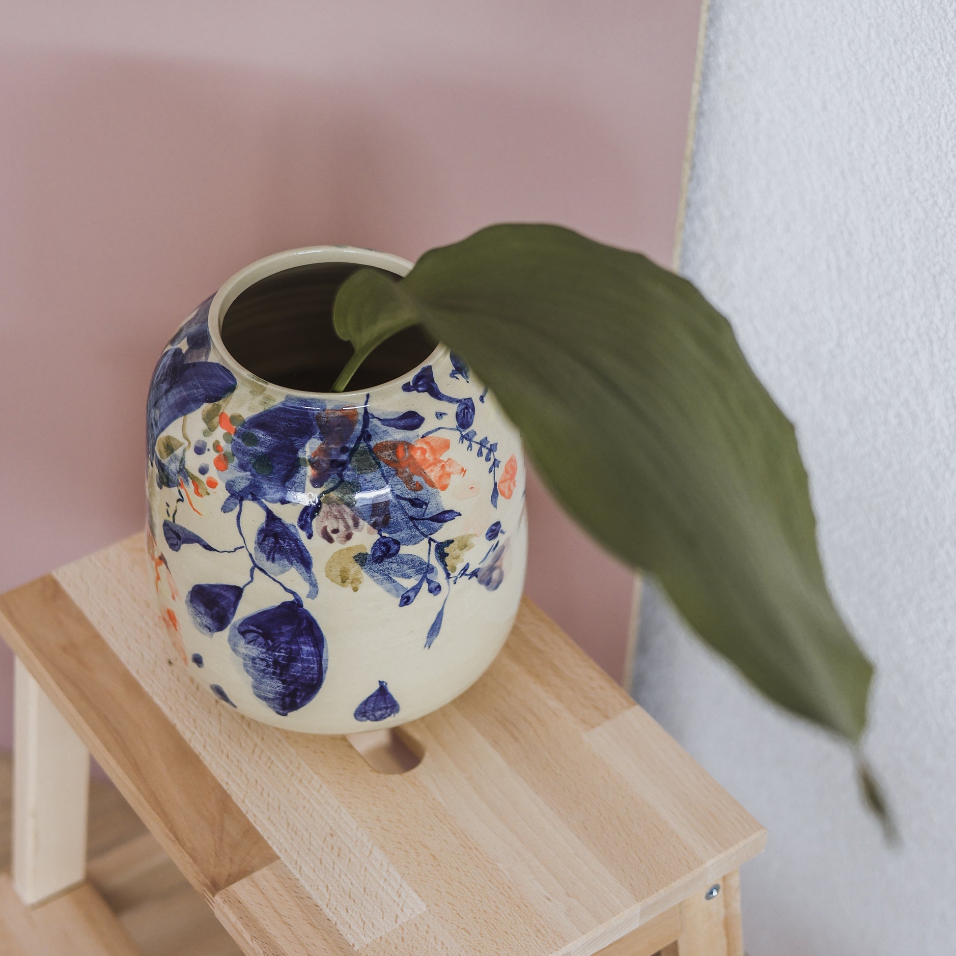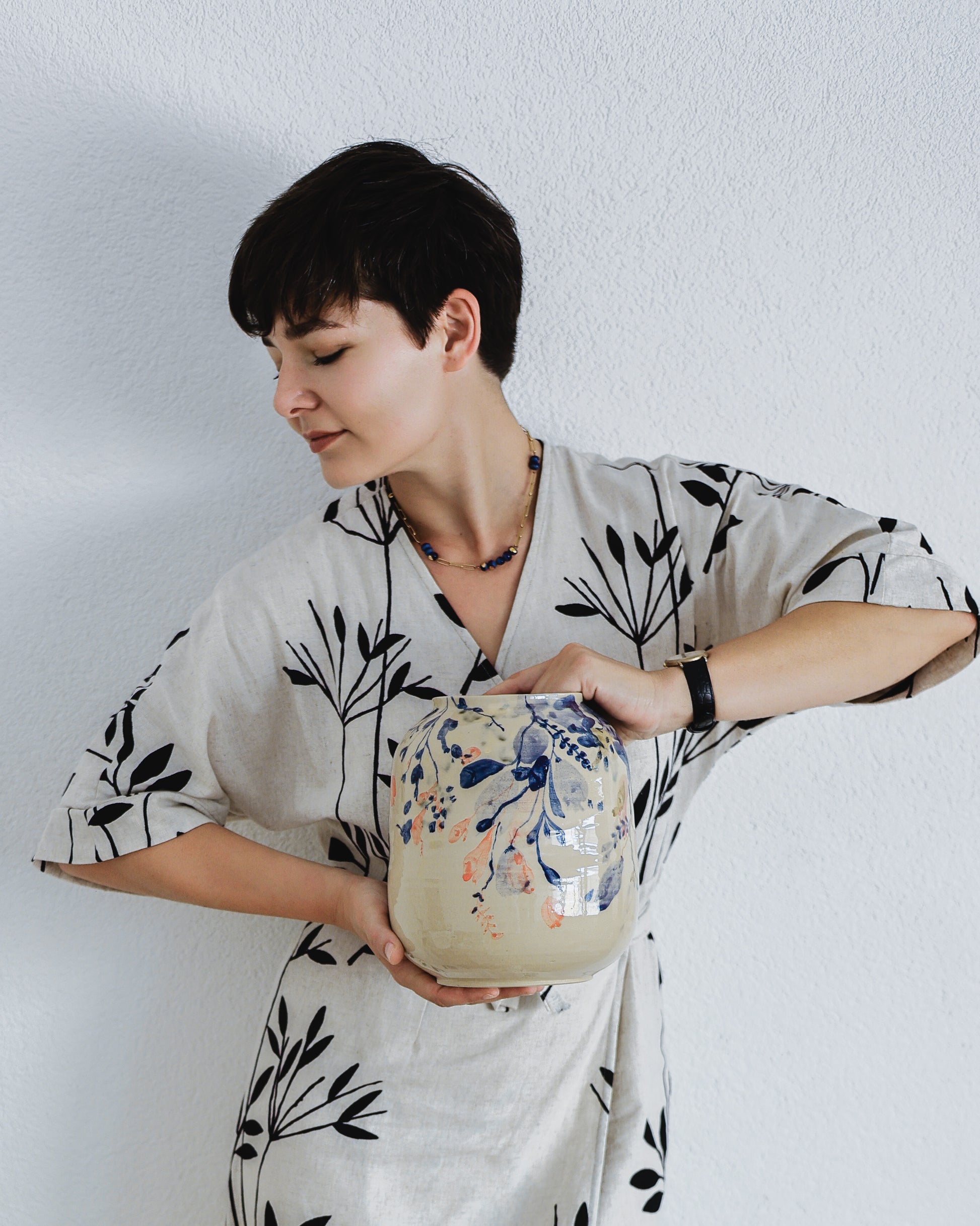 Glinena vaza rađena ručno na grnčarskom točku. Oslikana rukom. Sigurna za mašinsko pranje.