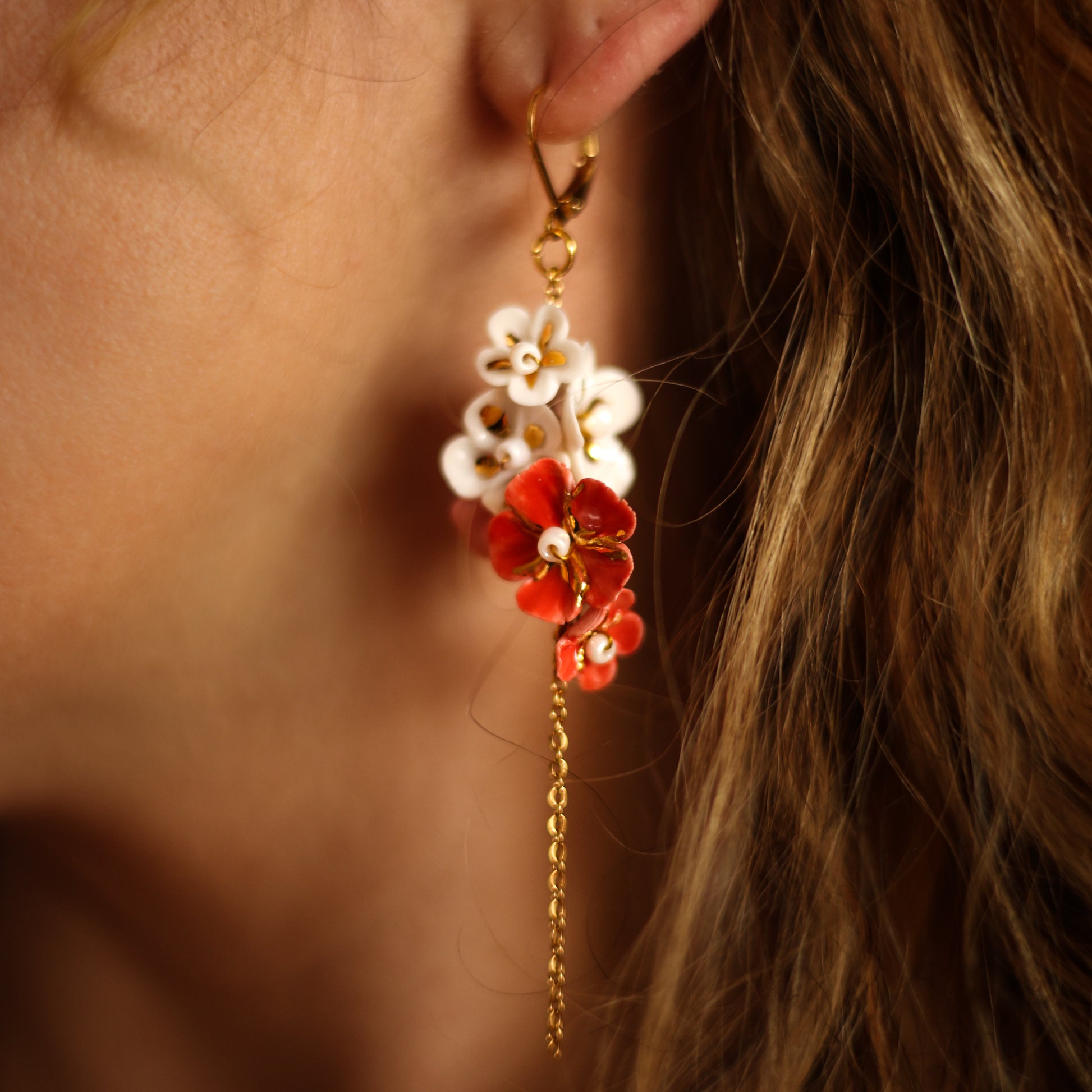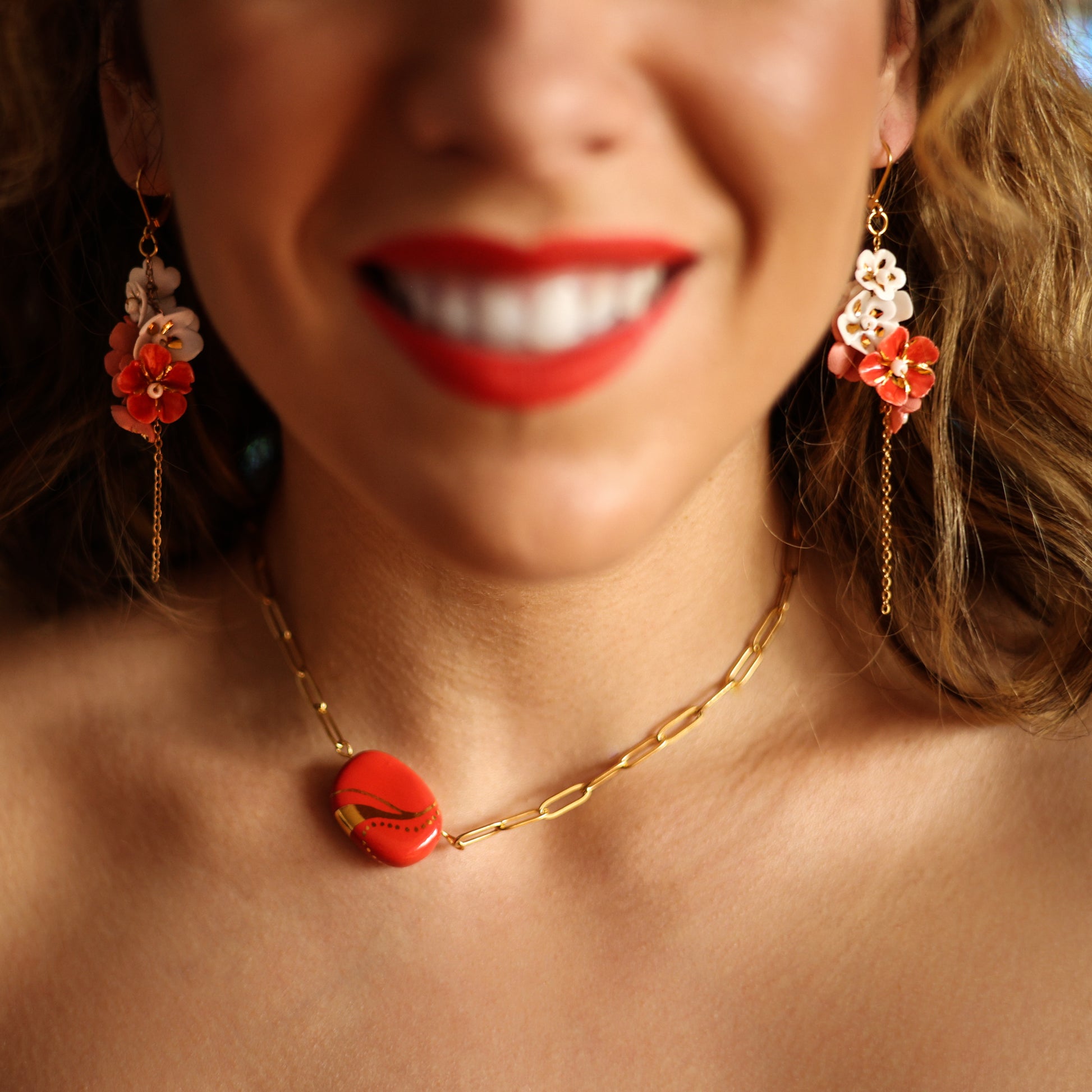 Glatka, sjajna završna obrada naušnica od porculana savršeno nadopunjuje bogat, topao ton 24 karatne pozlate. Metalni dijelovi su napravljeni od hipoalergenog čelika.