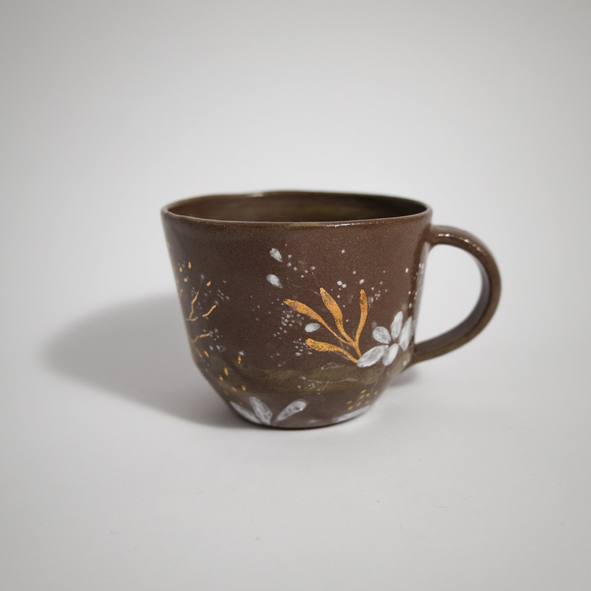 Gilinena šoljica napravljena ručno na grnčarskom točku, ručno oslikana. Sigurna za svakodnevnu upotrebu i pogodna za mašinsko pranje na manjim temperaturama..