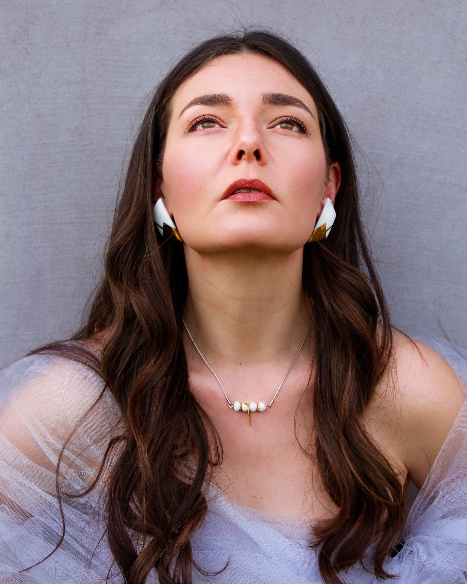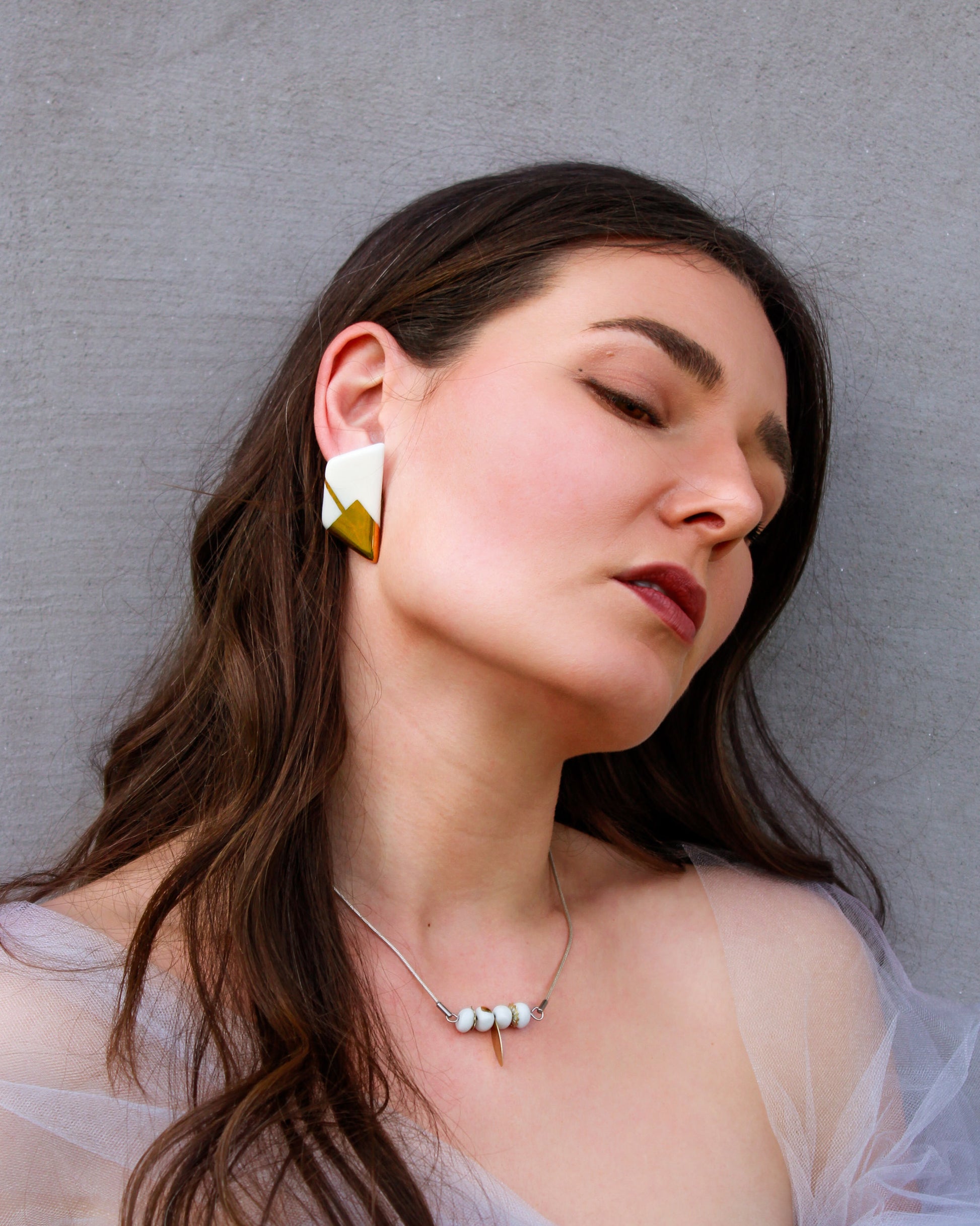 Nježni planinski vrhovi od porculana obavijeni su sjajnom pozlatom, stvarajući privlačan kontrast materijala. Bilo da se nose kao upečatljivi komad ili dnevni dodatak, ova umjetnička djela evociraju sjećanja na prekrasne vidike i avanture. Svaki je komad pažljivo ručno izrađen kako bi utjelovio surovost, ali spokoj ovih zadivljujućih prirodnih čuda.