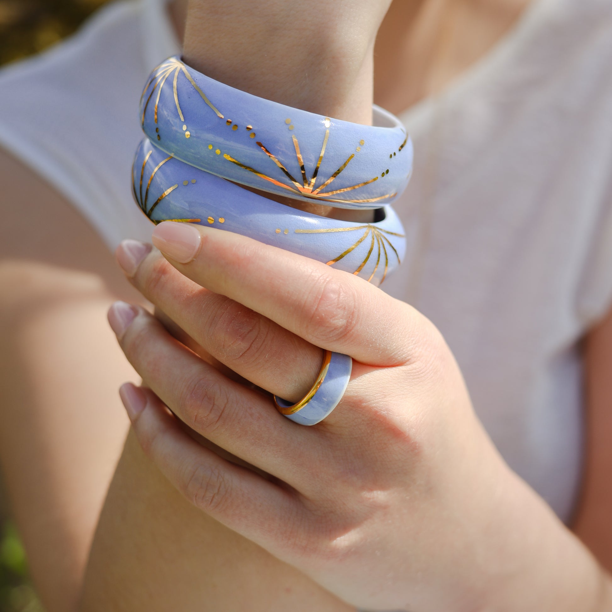 Nježne pastelne nijanse porculana evociraju suptilne tonove ranog svitanja, dok sunce izlazi i obasjava svijet mekim, zlatnim svjetlom. Porculanske elemente pažljivo upotpunjuje pozlate i ; dodajući im luksuzan sjaj. Toplina sjaja zlata kontrastira sa porcelanom, stvarajući zapanjujuću igru svetla i senki koja hvata suštinu prolećnog jutra.
