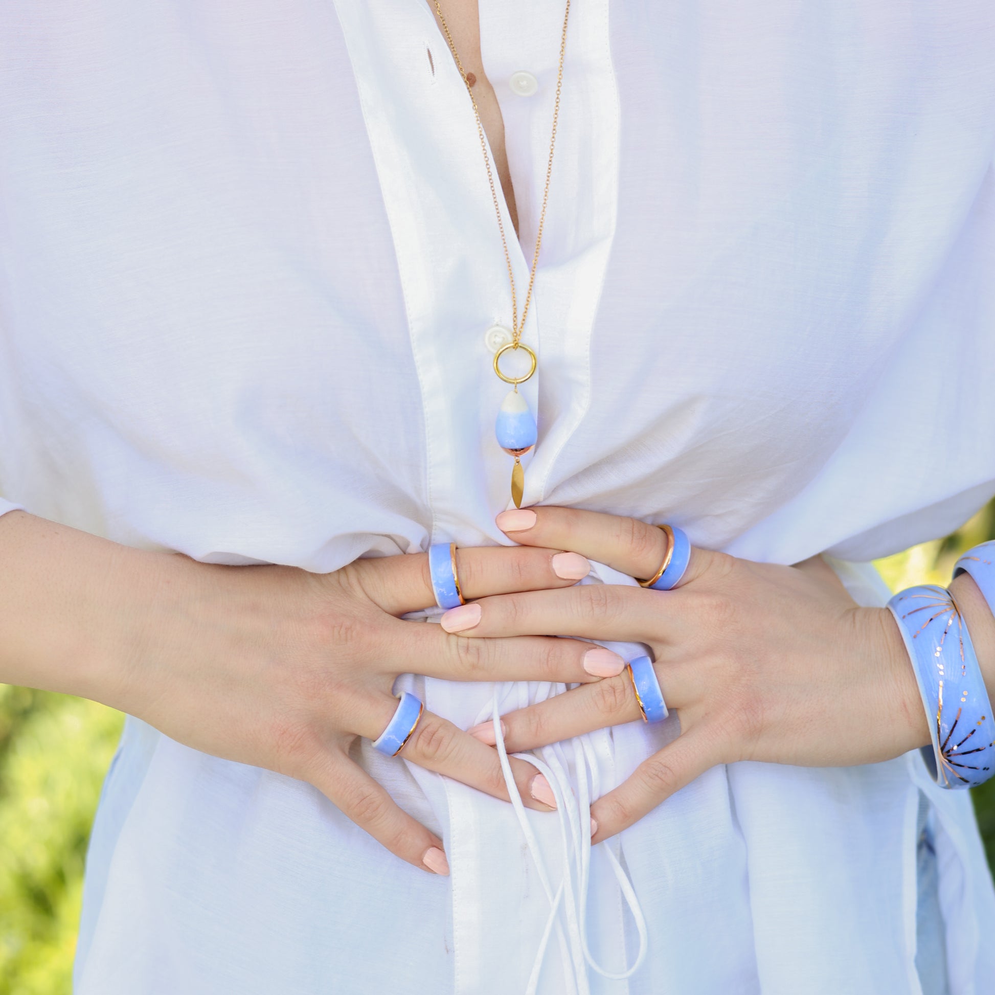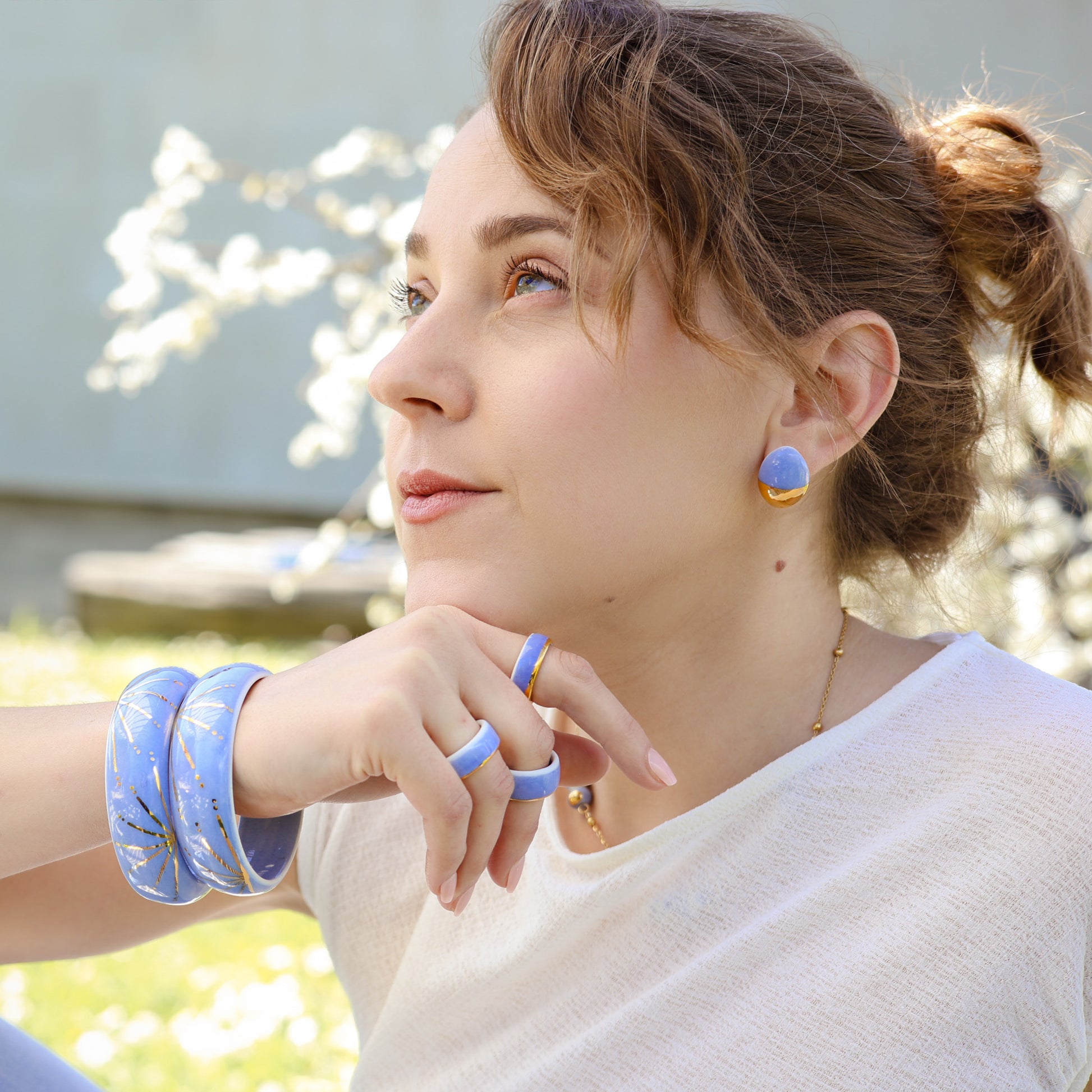 Nježne pastelne nijanse porculana evociraju suptilne tonove ranog svitanja, dok sunce izlazi i obasjava svijet mekim, zlatnim svjetlom. Porculanske elemente pažljivo upotpunjuje pozlate i ; dodajući im luksuzan sjaj. Toplina sjaja zlata kontrastira sa porcelanom, stvarajući zapanjujuću igru svetla i senki koja hvata suštinu prolećnog jutra.