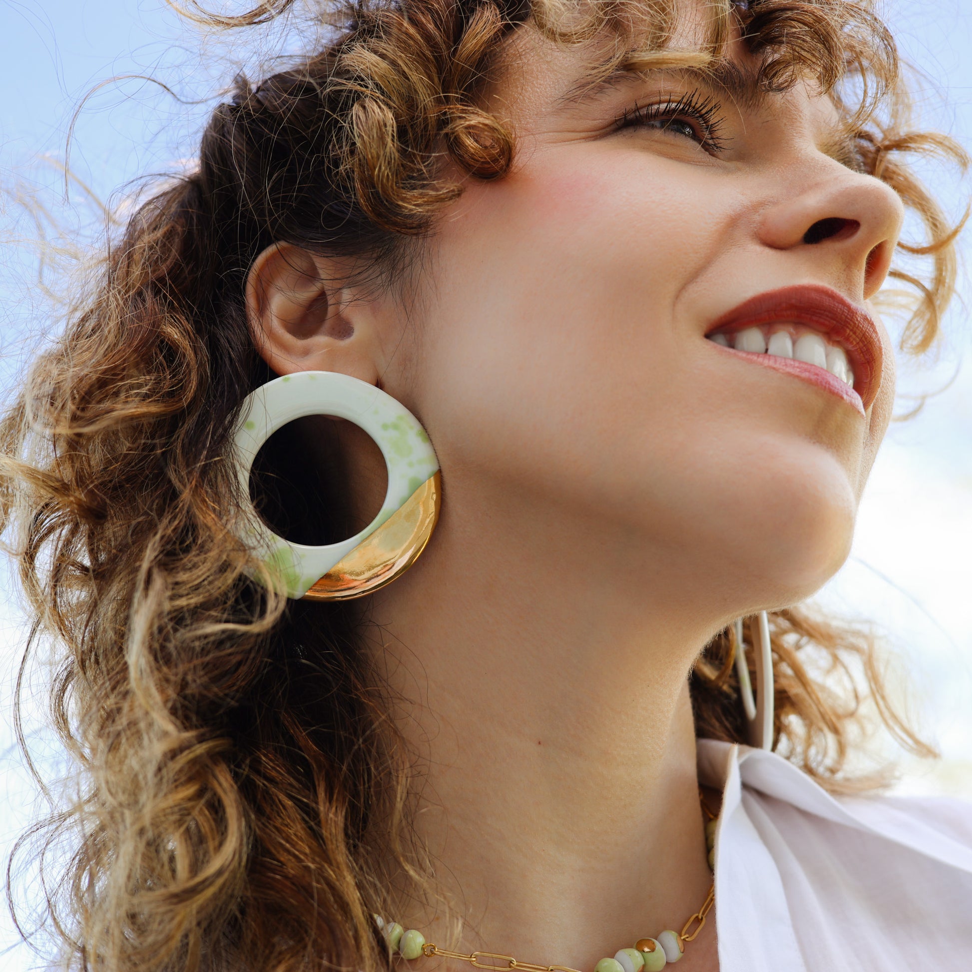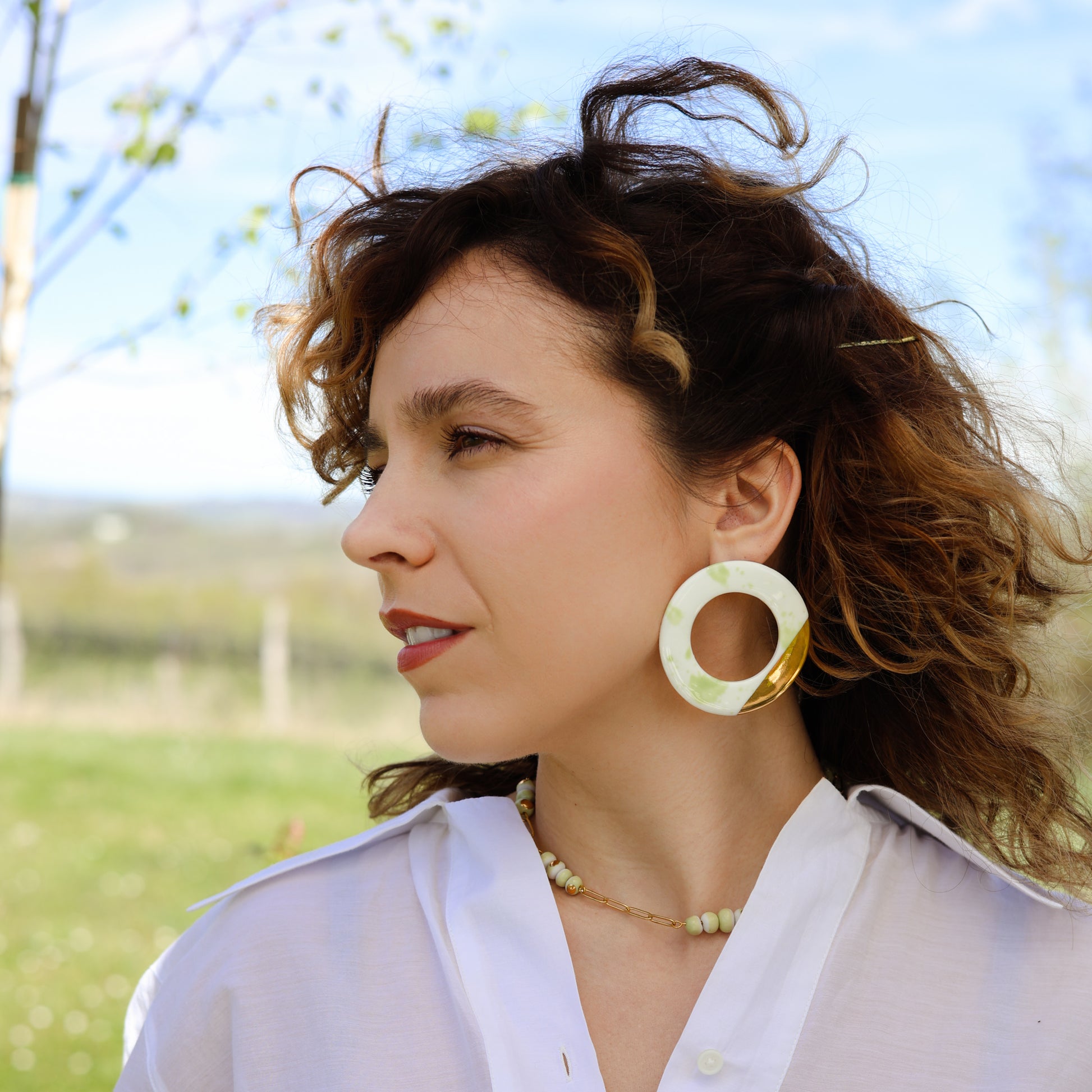 Nježne pastelne nijanse porculana evociraju suptilne tonove ranog svitanja, dok sunce izlazi i obasjava svijet mekim, zlatnim svjetlom. Porculanske elemente pažljivo upotpunjuje pozlate i hipoalergeni nehrdjajući čelik; dodajući im luksuzan sjaj. Toplina sjaja zlata kontrastira sa porcelanom, stvarajući zapanjujuću igru svetla i senki koja hvata suštinu prolećnog jutra.