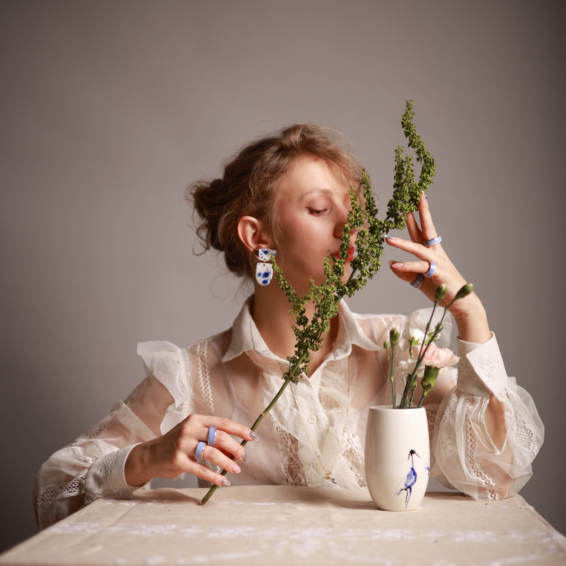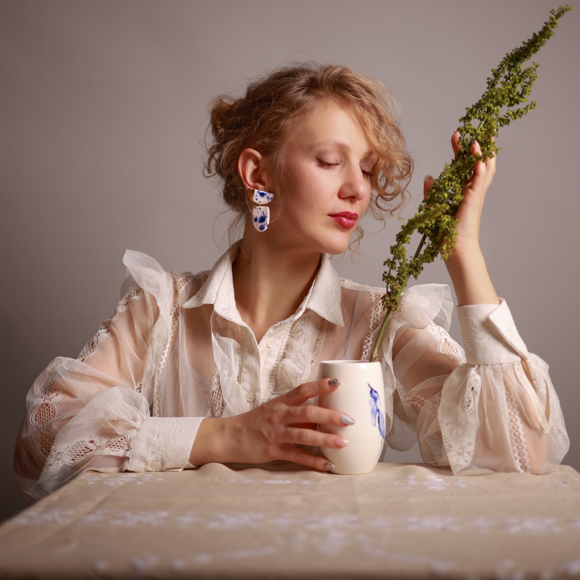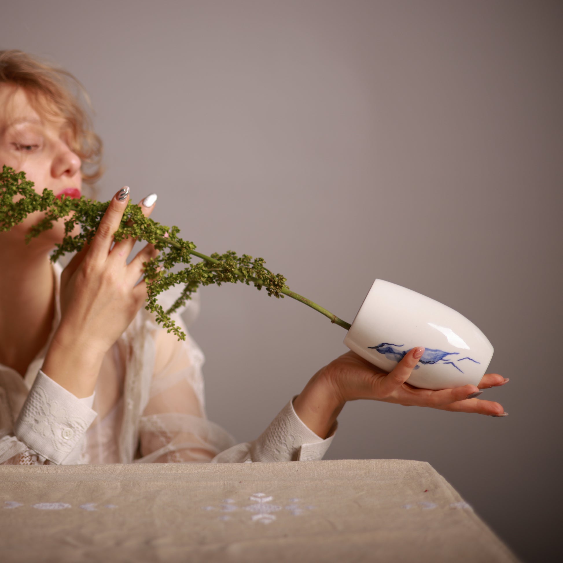 Porculanska vaza napravljena ručno na grnčarskom točku, ručno oslikana. Sigurna za svakodnevnu upotrebu i pogodna za mašinsko pranje na manjim temperaturama..