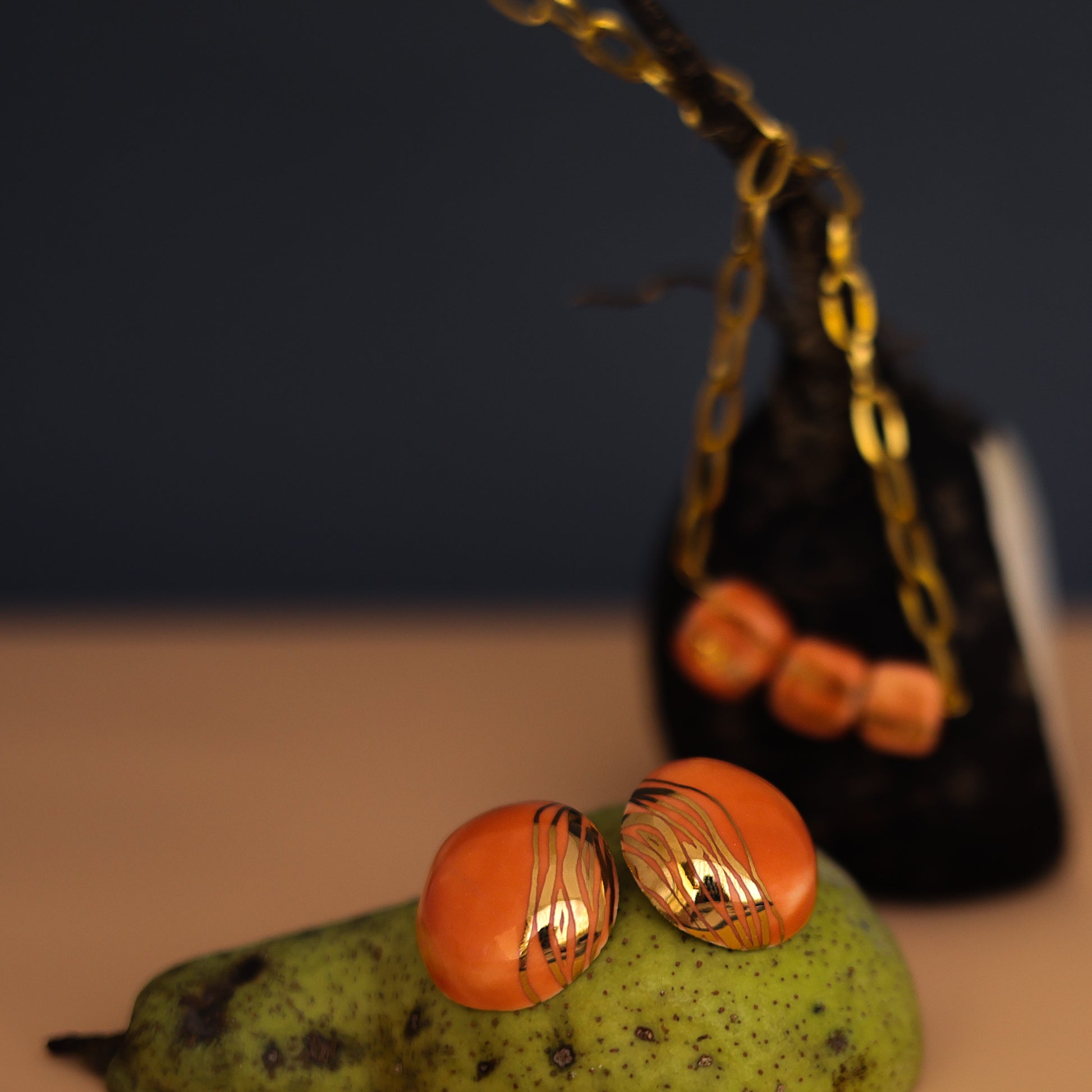 karatna pozlata dodaje dašak raskoši i sofisticiranosti nakitu, podižući ga na novi nivo luksuza. Paleta boja kolekcije odražava bogate nijanse i suptilne tonove pronađene na slikama mrtve prirode. Metalni dijelovi su napravljeni od hipoalergenog čelika.Ova fuzija umjetničkih formi stvara zadivljujući narativ koji slavi prolaznu ljepotu života, odajući počast prolaznosti postojanja.